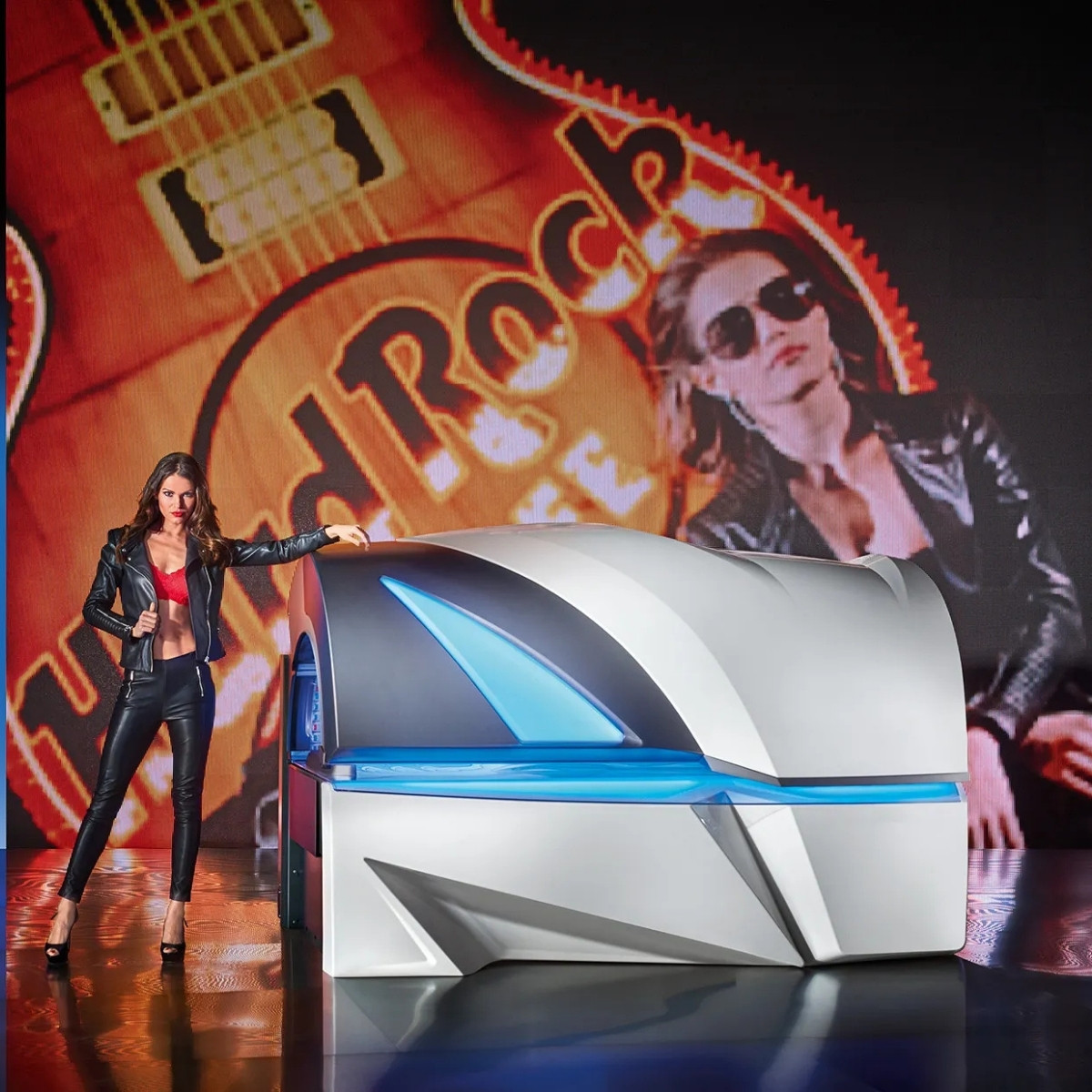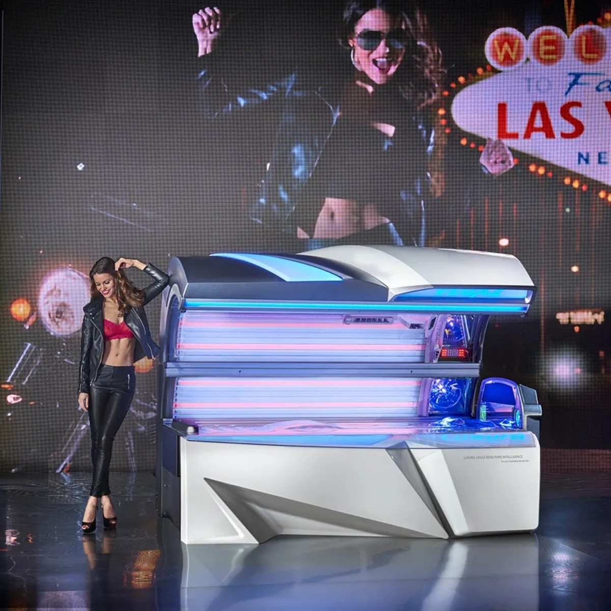 The Luxura VEGAZ 8200 Highbrid brings together premium design, energy efficiency and advanced light technology. With individually controlled PREMIUM Intelligent E-Power lamps (100/200W) via IP Control, and a unique mix of blue and red PREMIUM lamps, it delivers powerful tanning results enhanced with skin care benefits, all in ultimate comfort.